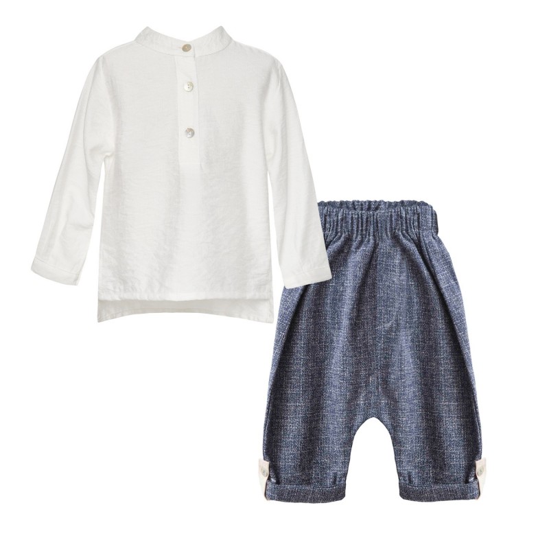 Two in a Castle Set With Mao Blouse & Linen Blend Slouchy Pants Blue T6404